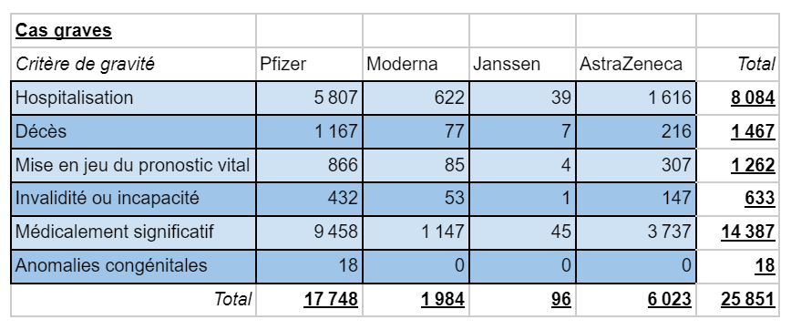 Si l’on additionne les conséquences graves, pour chacun des 4 vaccins³ ⁴ ⁵ ⁶.