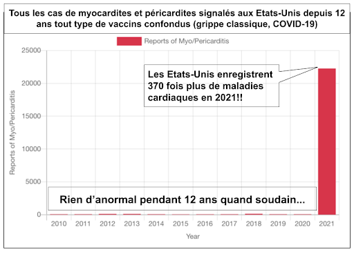 C’est donc bien l’arrivée de la technologie des vaccins à ARN messager qui génère ce pic INÉDIT d’inflammations du cœur.